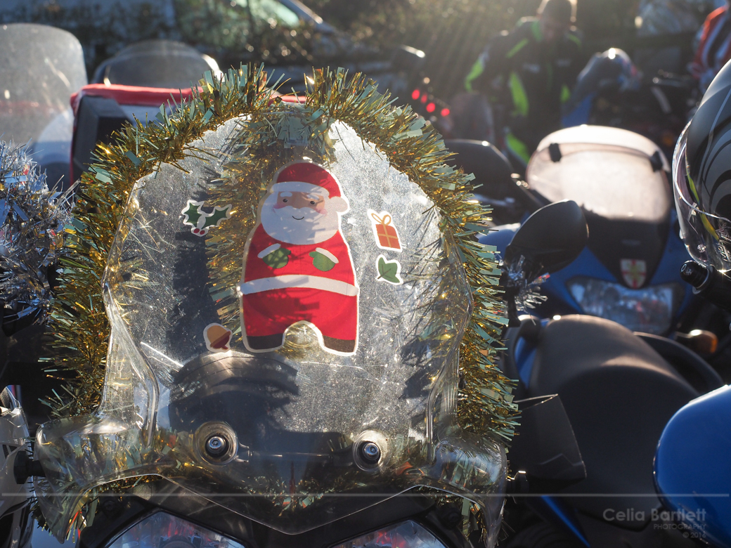 This was the biker who rekindled the event back in 2013 and has organised it every year since, along with the full support of Sgt Gareth Williams and his team of Police riders. Sadly, for Sgt Williams it was to be his last Toy Run as he will be moving on to a new role. It was down to PC Simon Burgin to present Sgt Williams with a special momento of his time with the event - a snug-fitting golden santa hat!